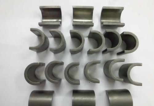 在粉末冶金生產(chǎn)中, 鐵粉的用量比其金屬粉末大得多。 鐵粉的 60% ~ 70% 用于制造粉末冶金零件。主要類型有鐵基材料、鐵鎳合金、鐵銅合金及鐵合 金和鋼。粉末冶金鐵基結構零件具有精度較高,表面粗糙值小,不需或只需 少量切削加工,節(jié)省材料,生產(chǎn)率高,制品多孔,可浸潤滑油,減摩、減振、 消聲等特點。 廣泛用于制造機械零件, 如機床上的調(diào)整墊圈、 調(diào)整環(huán)、 端蓋、 滑塊、底座、偏心輪,汽車中的油泵齒輪、活塞環(huán),拖拉機上的傳動齒輪、 活塞環(huán),以及接頭、隔套、油泵轉(zhuǎn)子、擋套、滾子等。 粉末冶金鐵基結構材料的牌號用“粉”、“鐵”、“構”三字的漢語拼 音字首“FTG”,加化合碳含量的萬分數(shù)、主加合金元素的符號及其含量的 百分數(shù)、輔加合金元素的符號及其含量的百分數(shù)和抗拉強度組成。如 FTG60 -20 , 表示化合碳量 0.4% ~ 0.7%, 抗拉強度 200MPa 的粉末冶金鐵基結構材料; FTG60Cu3Mo-40 ,表示化合碳量 0.4% ~ 0.7% ,合金元素含量 Cu2% ~ 4% 、 Mo0. 5% ~ 1.0% ,抗拉強度 400MPa 的粉末冶金鐵基結構材料。